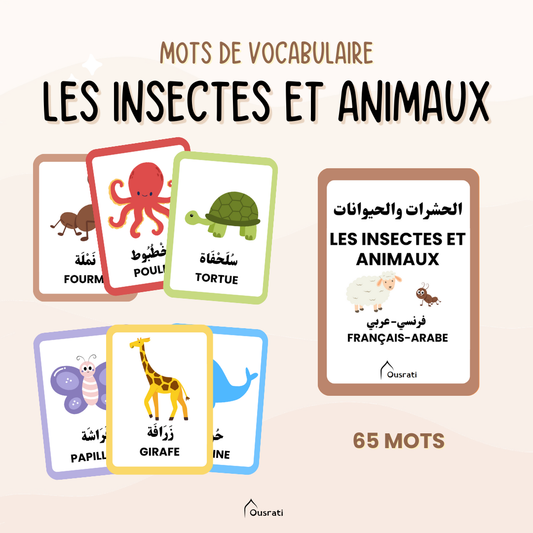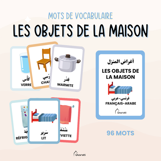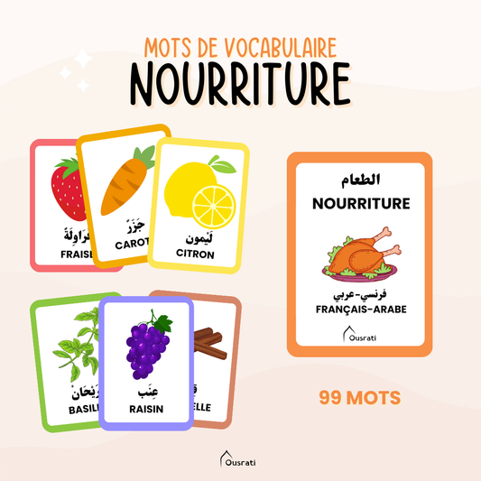 Nos cartes de mots arabes sont parfaites pour les enfants et les familles souhaitant enrichir leur vocabulaire tout en s'amusant !