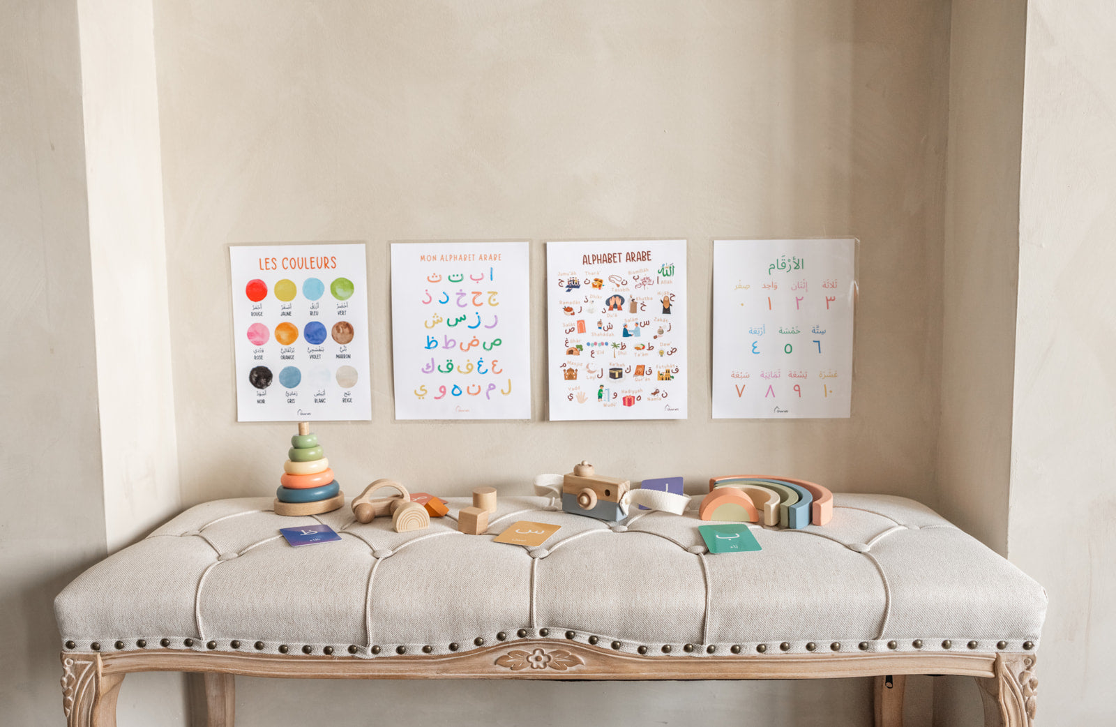 Encore une fois très satisfaite des produits de chez Ousrati! Ces outils sont parfaits pour décorer une chambre d'enfant ou un coin éducatif. J'ai trouvé le format français/arabe très pratique.